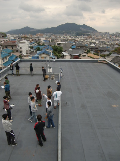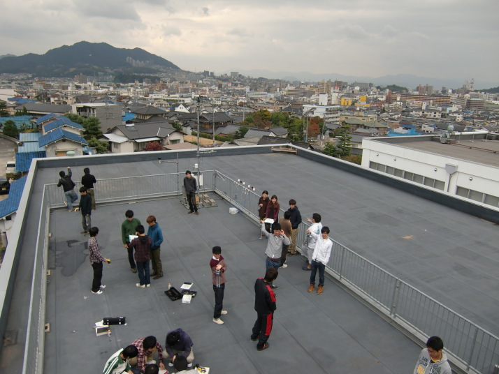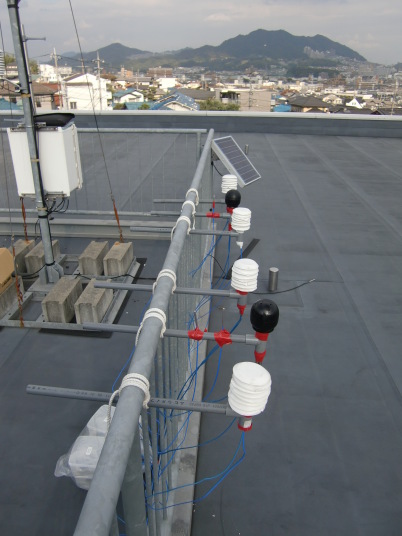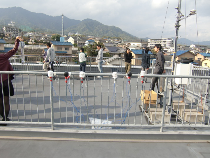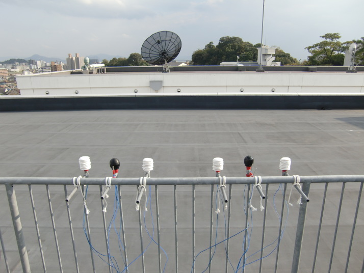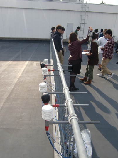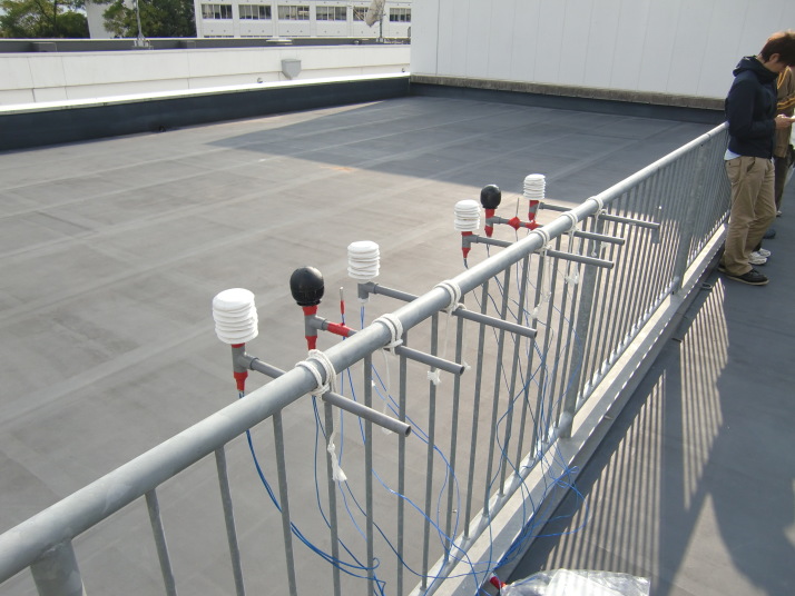 右側が1,3班、左側が2,4班で、それぞれ右から順に乾球、黒球+裸センサー、湿球。