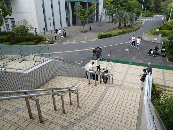| 鶴記念体育館2階入口 (階段上)から 観測地点全景 |